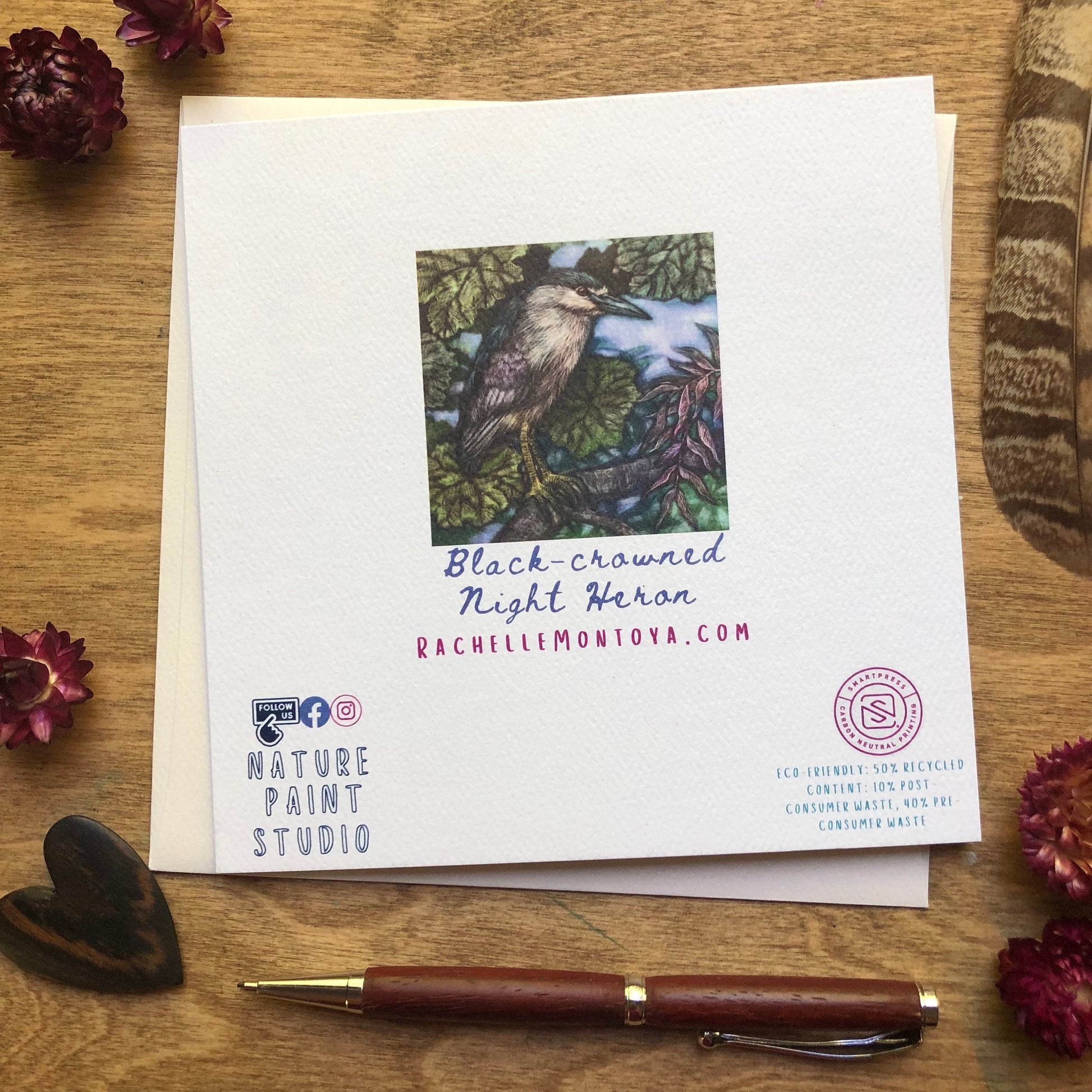 Measures 5.75” square. Printed professionally using eco friendly watercolor textured card stock. chlorine-free 30% post consumer fiber. premium colored envelope included, comes in a protective sleeve. Free shipping on all cards.