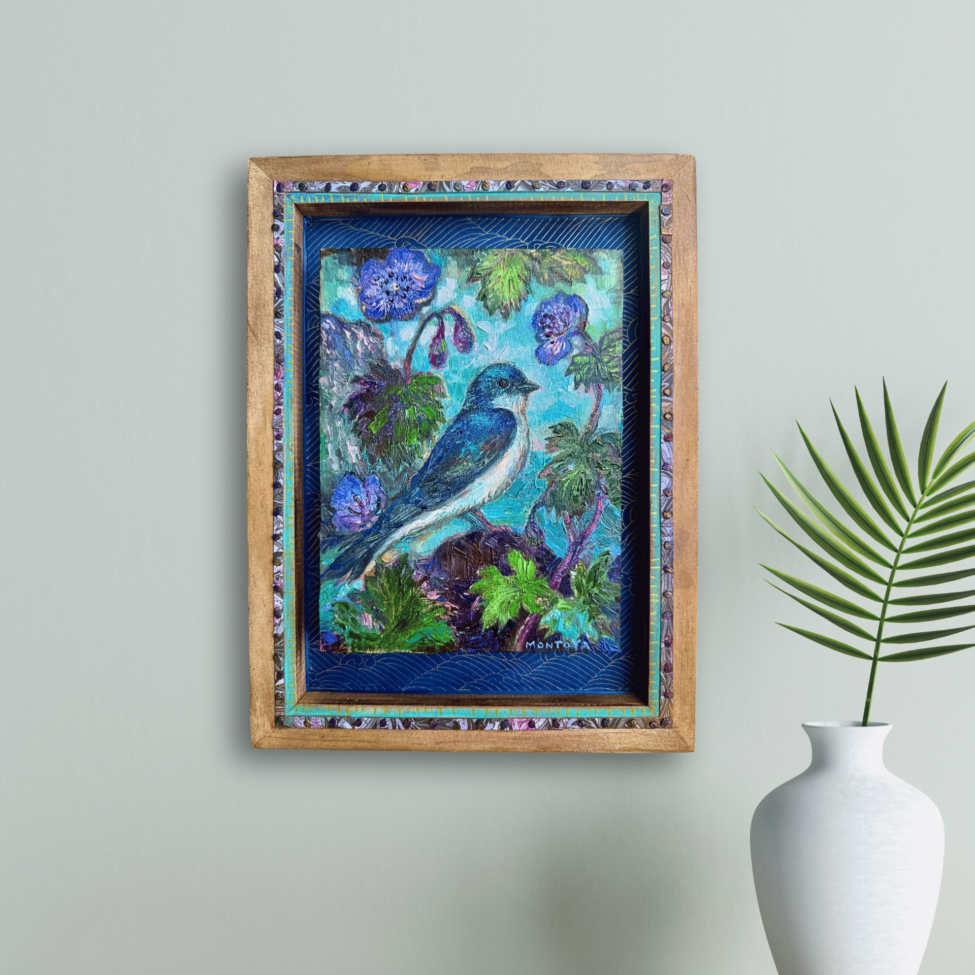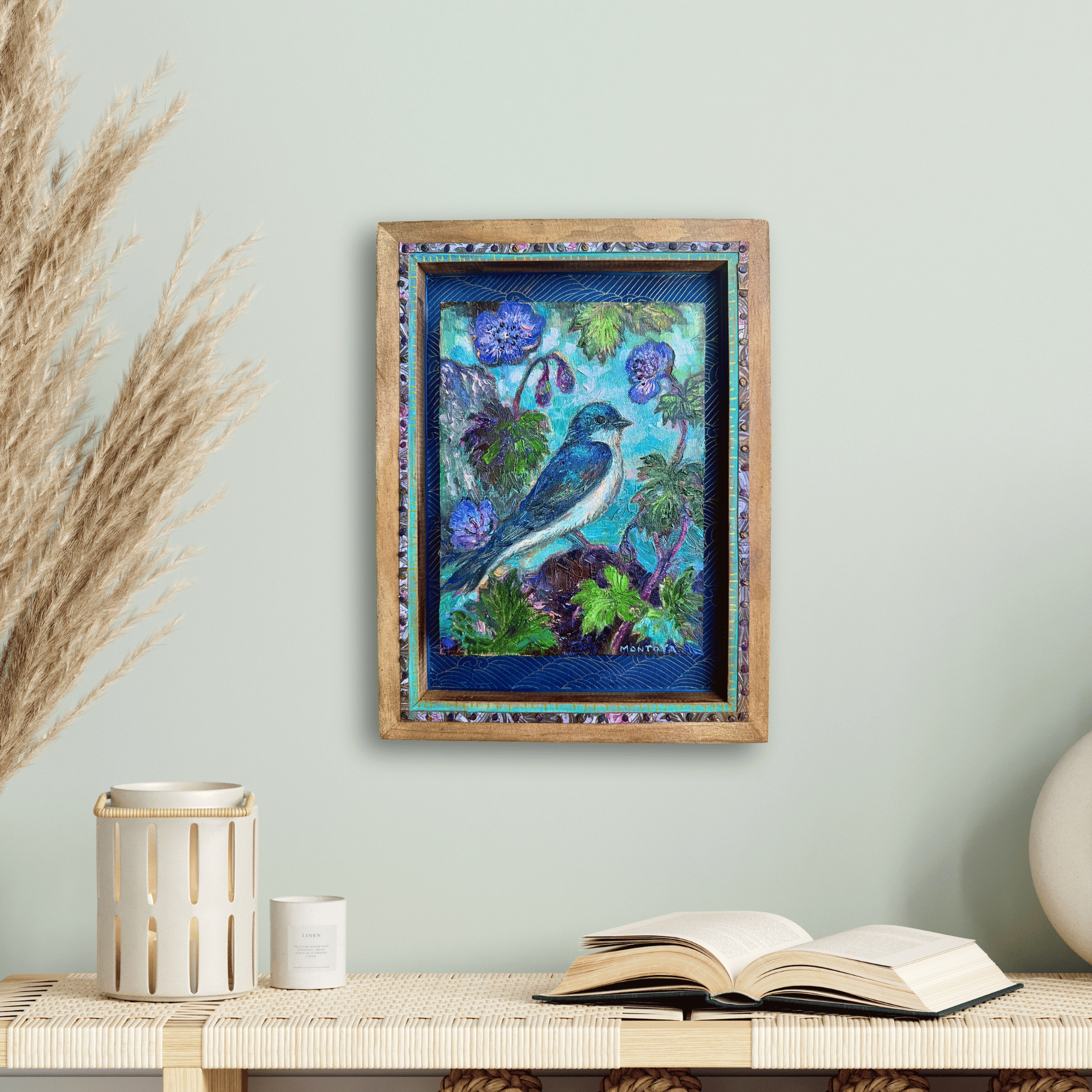 mounted on wood panel