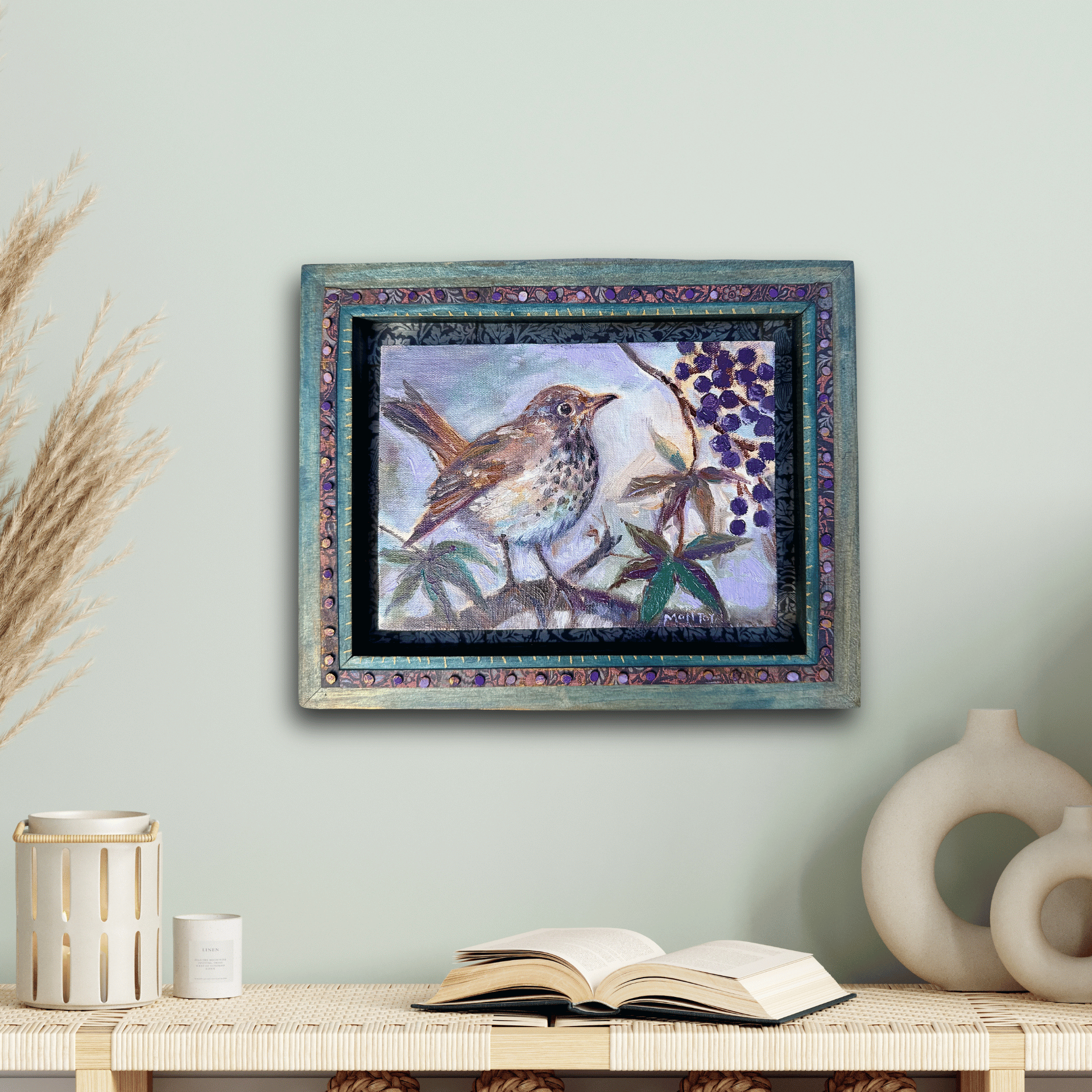 mounted on wood panel