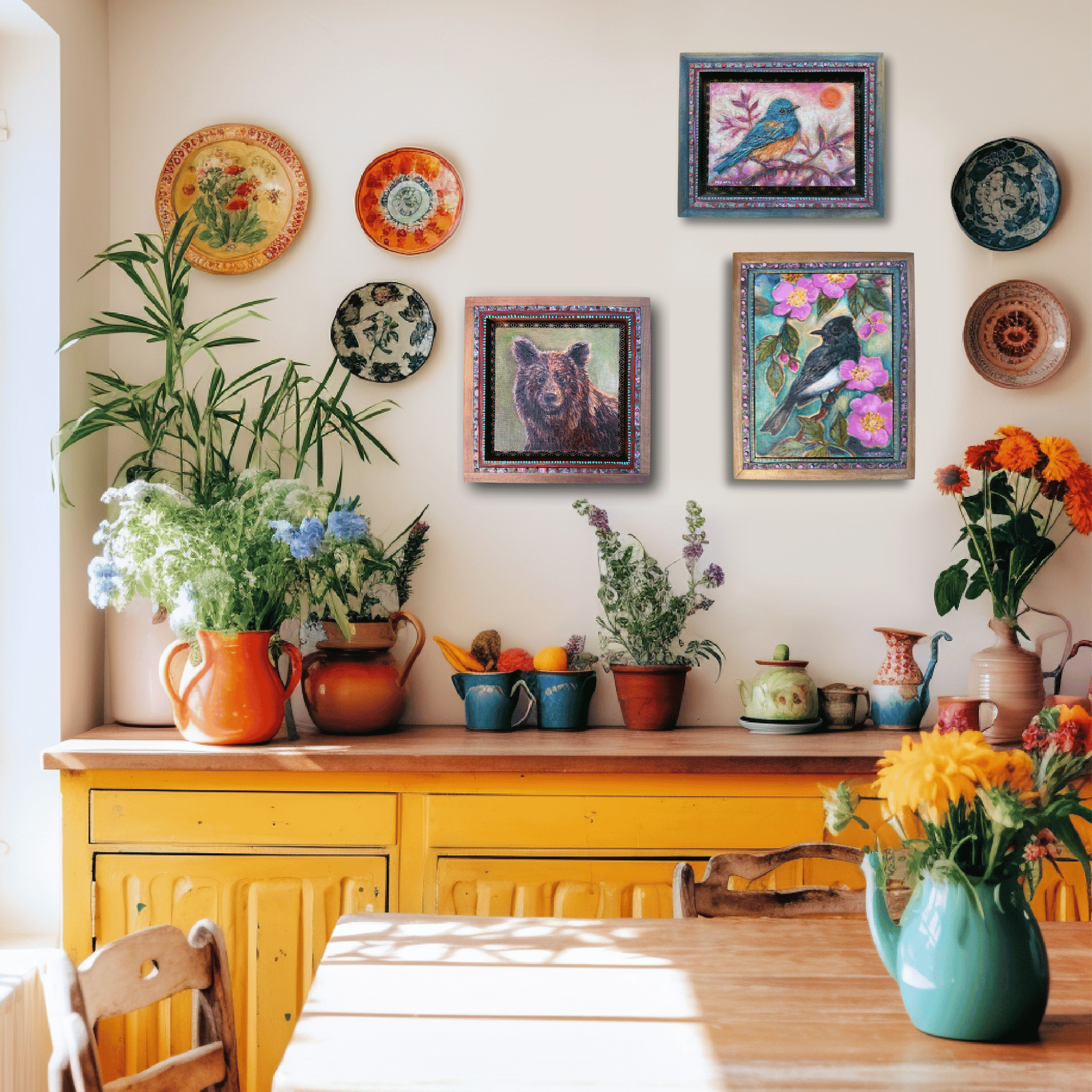 mounted on wood panel