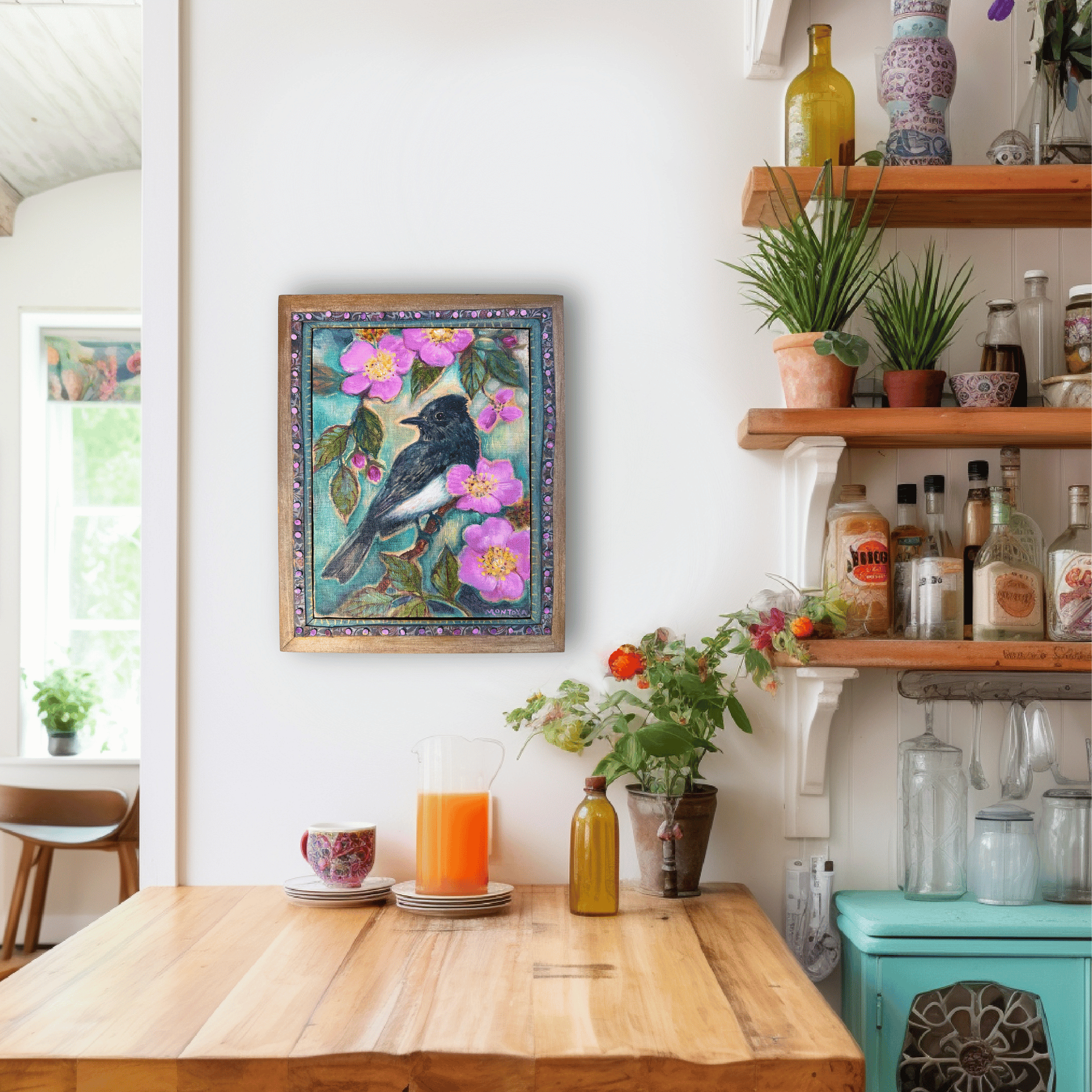 Black Phoebe and Wild Rose